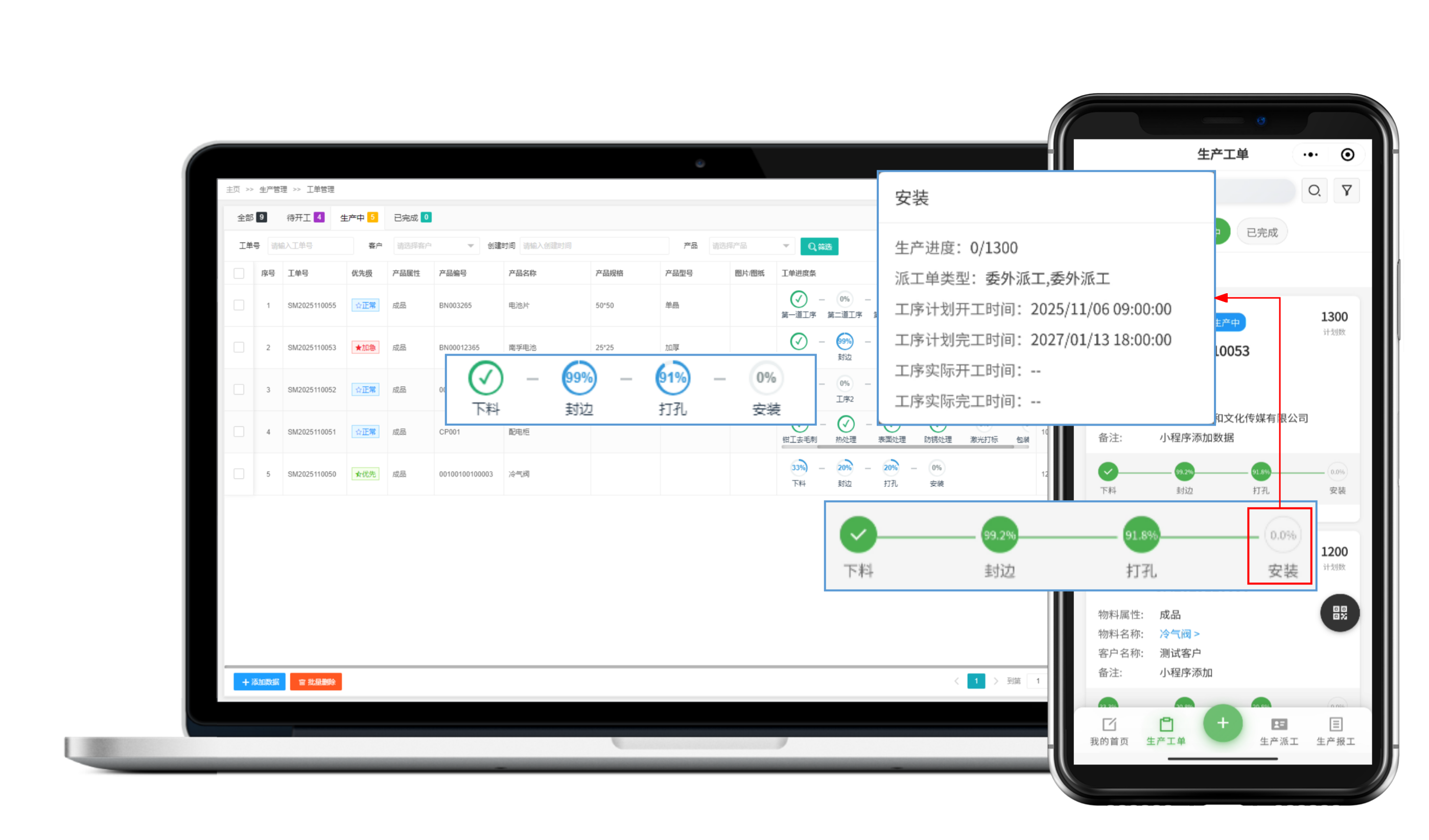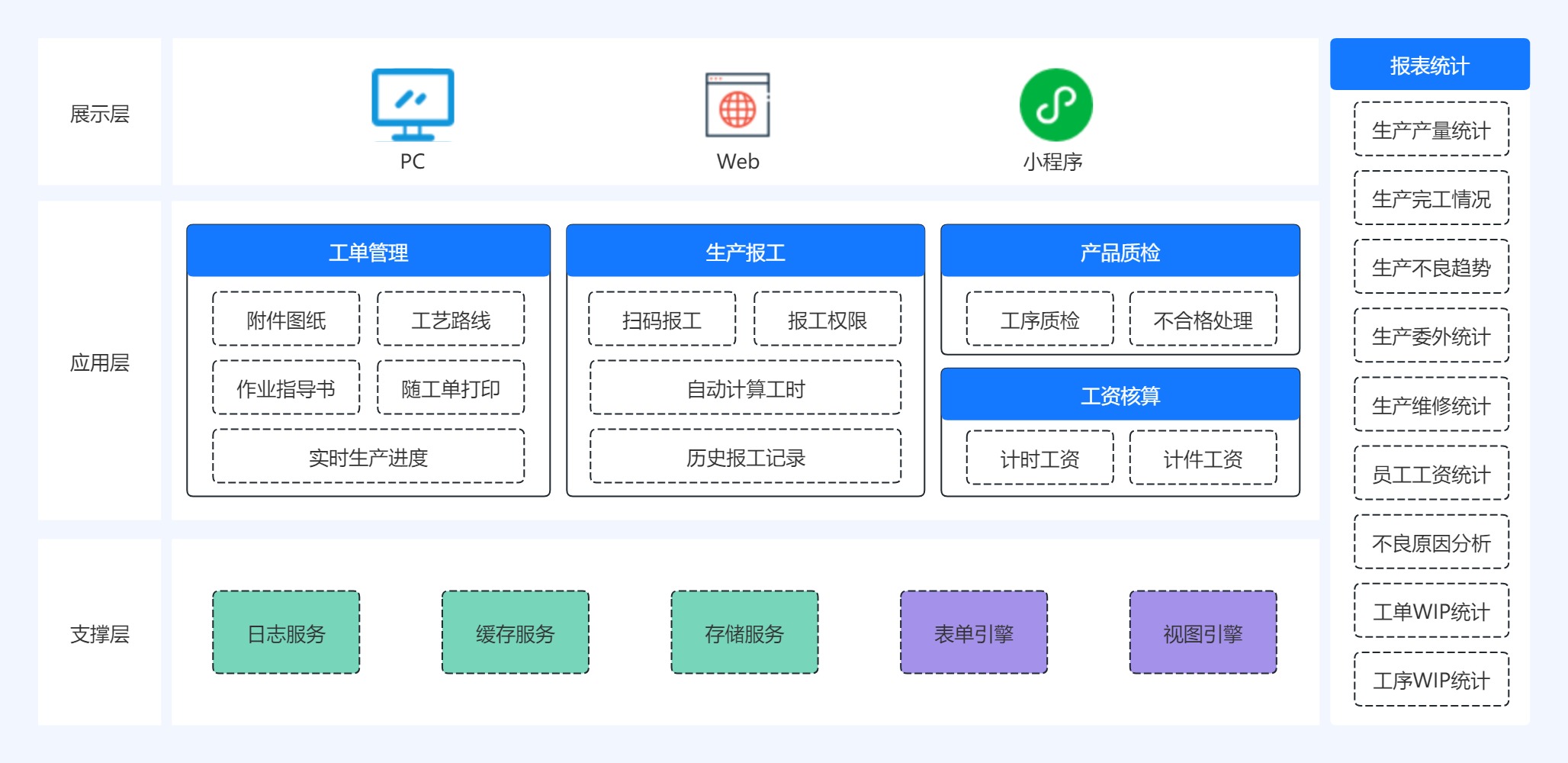 聚焦派工、报工、质检等核心环节,覆盖工单全生命周期,数据驱动透明化流程
